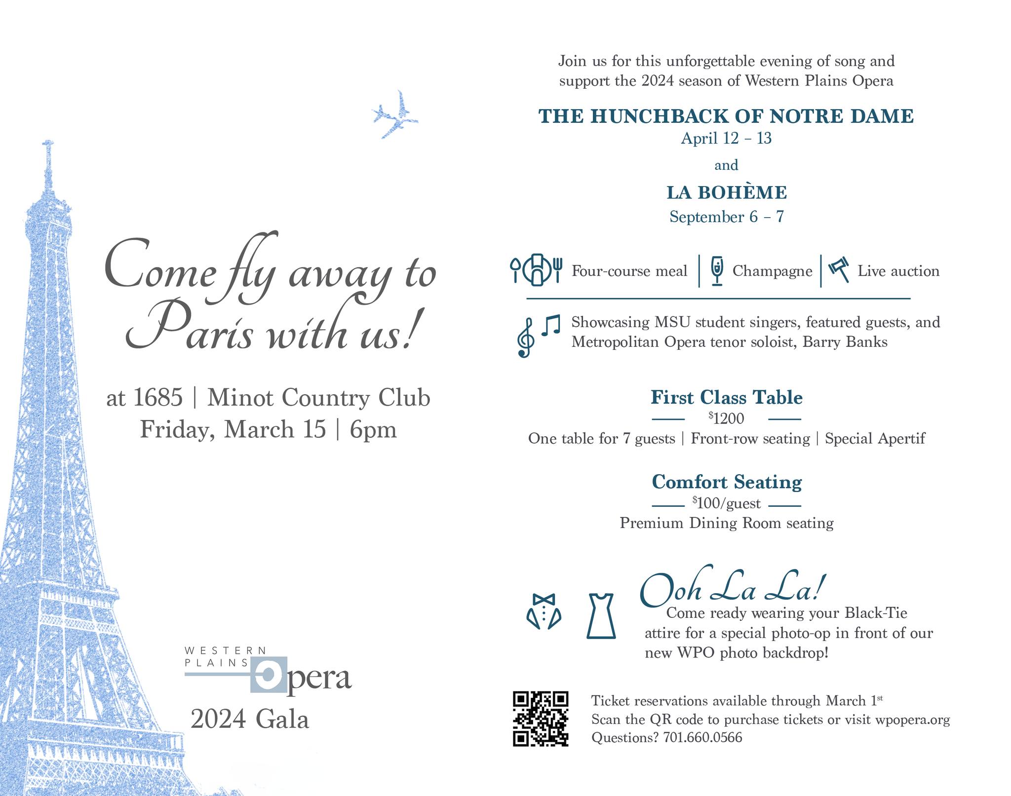 Come support the Western Plains Opera company for a four-course dinner, champagne, and free professional pictures of you and your guests in your finest.